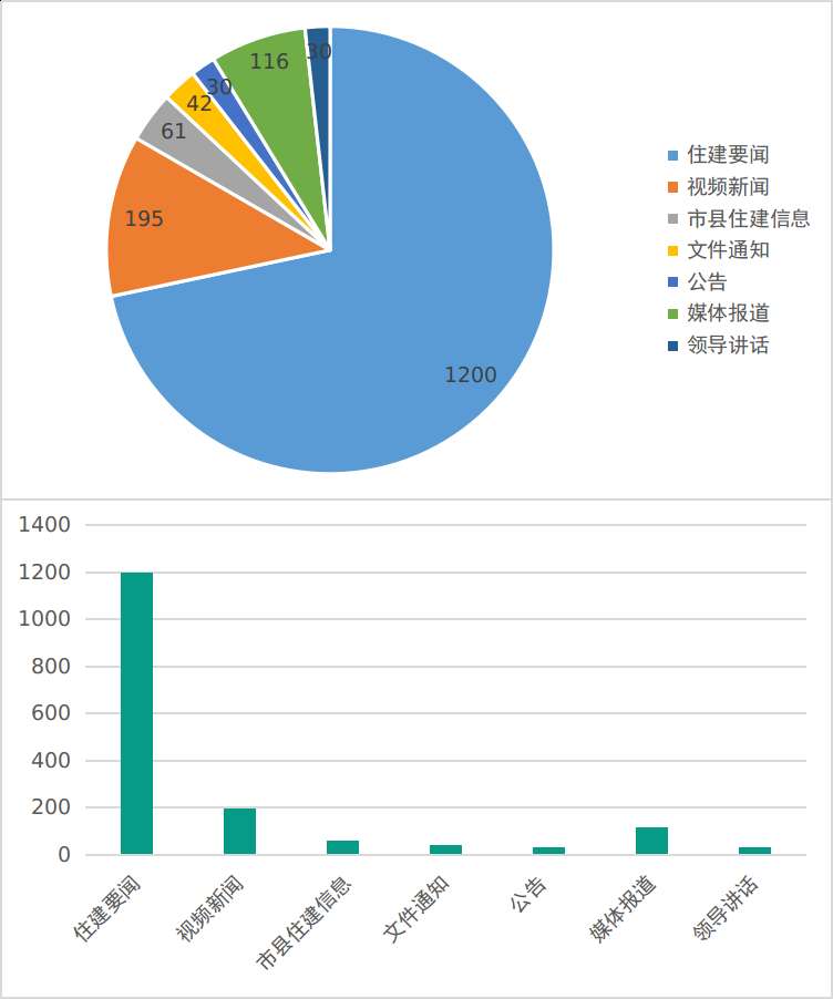 目前局门户网站共发布住建要闻1200余条,视频新闻195余条,市县住建信息61余条,文件通知42余条,公告30条,媒体报道116条,领导讲话30余篇。