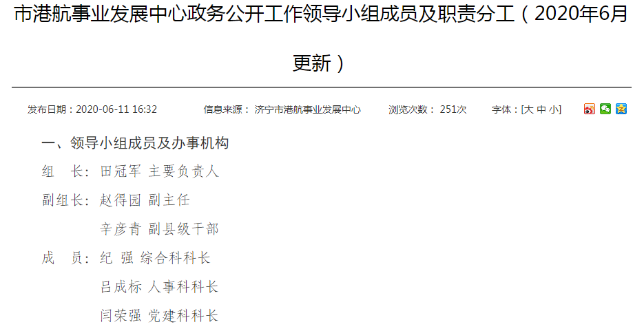 1. 机制体制进一步理顺。结合工作实际,中心调整了政务公开工作领导小组,更新了政务公开工作领导小组成员及职责分工、政务公开工作分管领导等信息。政务公开工作领导小组由中心主要负责人任组长并下设办公室,有3名专职人员负责政务公开工作,有效保证了公开职能的发挥。