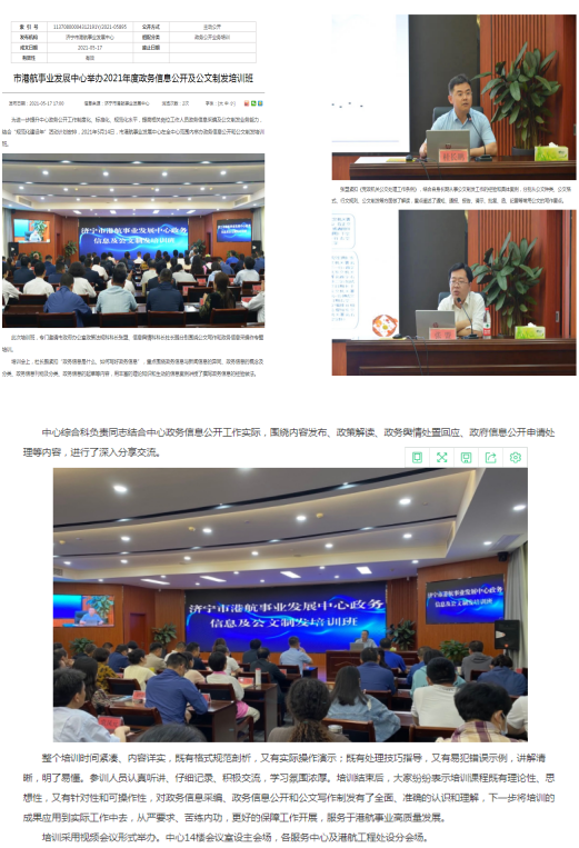 【图文版】济宁市港航事业发展中心2021年政府信息公开工作年度报告