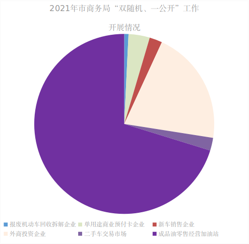 (一)主动公开方面。2021年,市商务局通过网站和微信公众号公开政府信息共计842条,局主要领导和分管领导先后3次带队上线《政风行风热线》《问政山东》等栏目就电子商务进农村、报废汽车回收监管、外派劳务监管等群众关切问题进行解读。通过济宁市网络问政平台就疫情防控、僵尸企业处置等一系列问题进行了认真答复回应,答复网友提问18条,不断提升商务工作知晓度和满意度。2021年协同市税务局、市市场监督管理局、市公安局和市生态环境局等单位开展跨部门联合“双随机、一公开”抽查工作10次,抽查各类企业131家,检查结果均在市商务局门户网站政务公开栏予以公示,并将检查结果及时录入省政府部门联合“双随机、一公开”监管平台。