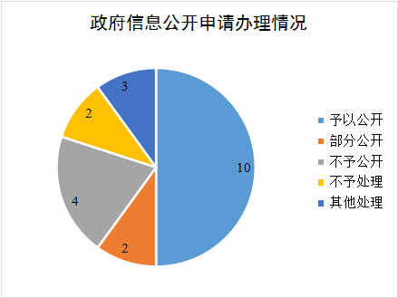 (二)依申请公开。全年受理依申请信息公开21件,包括信函申请2件、网络申请19件,全部在规定时间内办结。其中予以公开10件,部分公开2件。全年共收到行政复议1件,维持结果1件,尚未办结0件;未经复议直接诉讼0件,复议后诉讼0件。