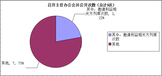 全年度召开主任办公会9次,公开了9次,邀请利益相关方列席办公会2次;