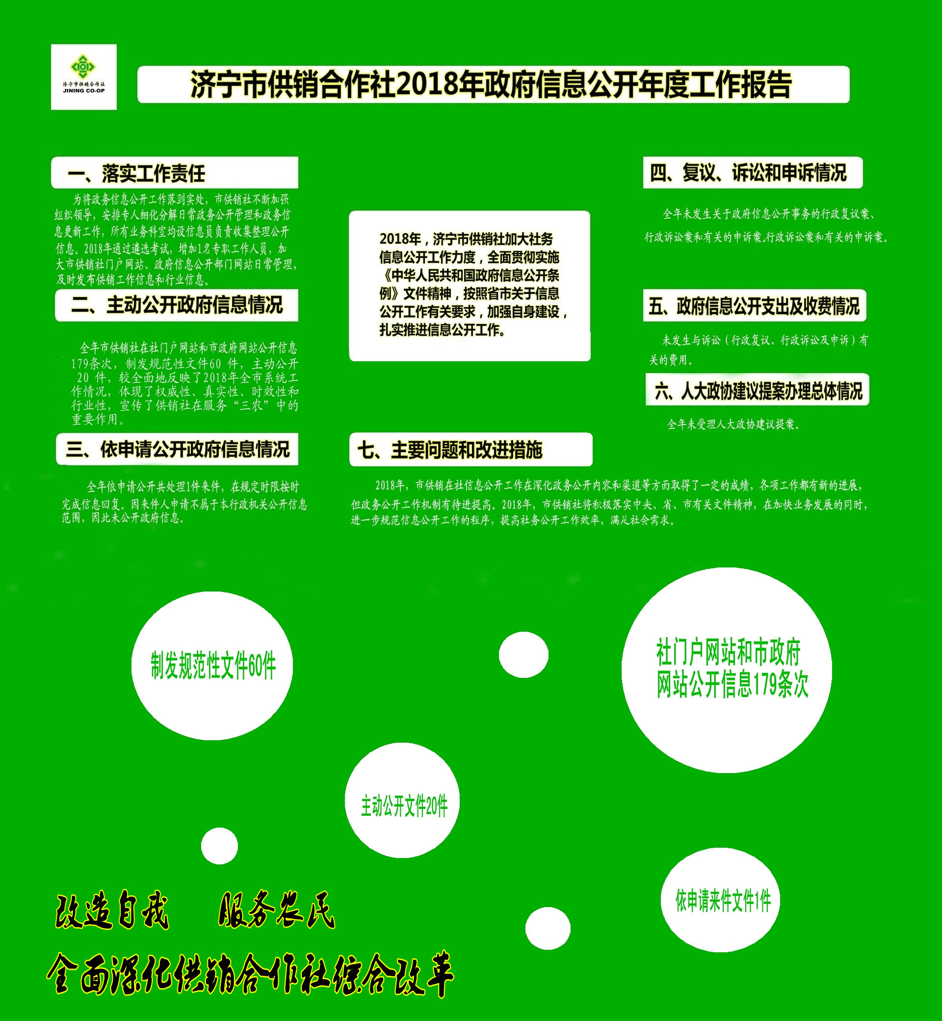 二、主动公开政府信息情况。全年市供销社在社门户网站和市政府网站公开信息179条次,制发规范性文件60件,主动公开20件,较全面地反映了2018年全市系统工作情况,体现了权威性、真实性、时效性和行业性,宣传了供销社在服务“三农”中的重要作用。