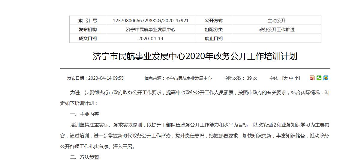 图文解读:济宁市民航事业发展中心2020年政府信息公开工作年度报告图文解读