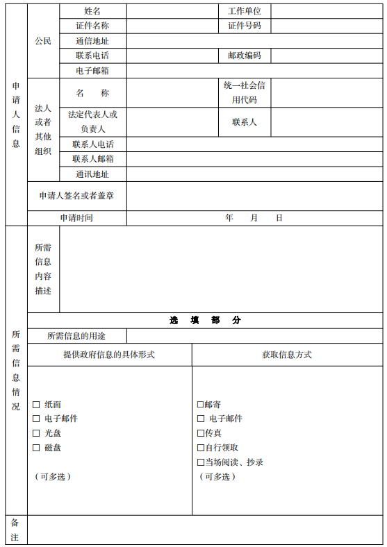 2.申请表应准确载明申请人的姓名或者名称、身份证明、联系方式、获取政府信息的方式及其载体形式。所需政府信息内容描述应当指向明确,建议详尽提供所需政府信息的名称、文号或者便于行政机关查询的其他特征性描述。